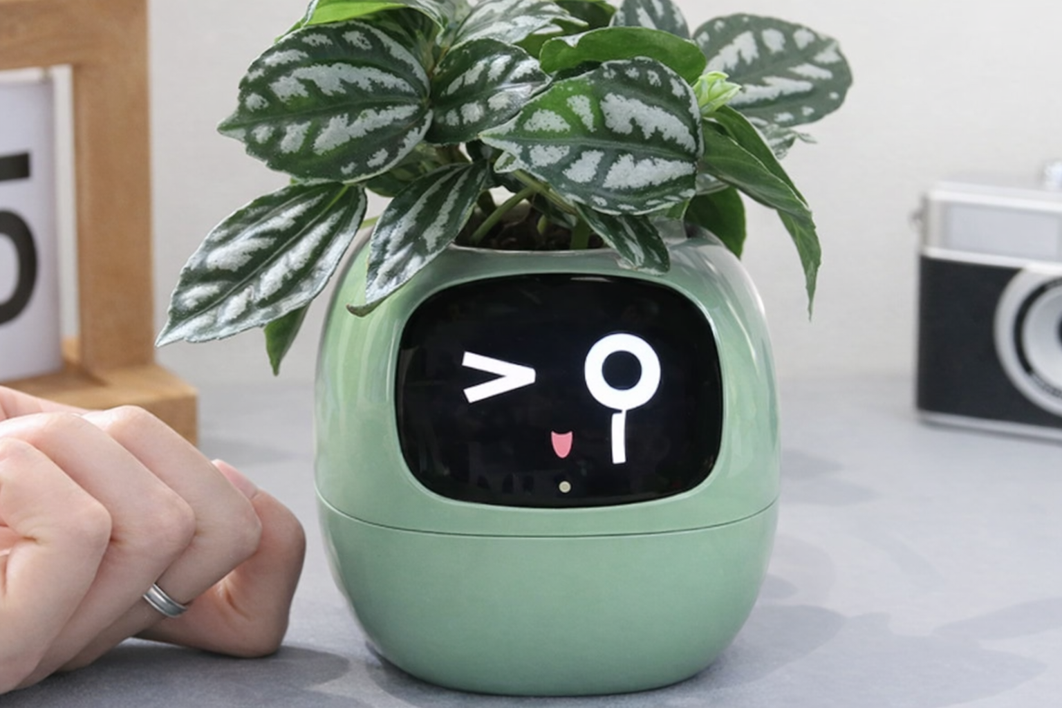 • A smart plant and a cute desk companion in one