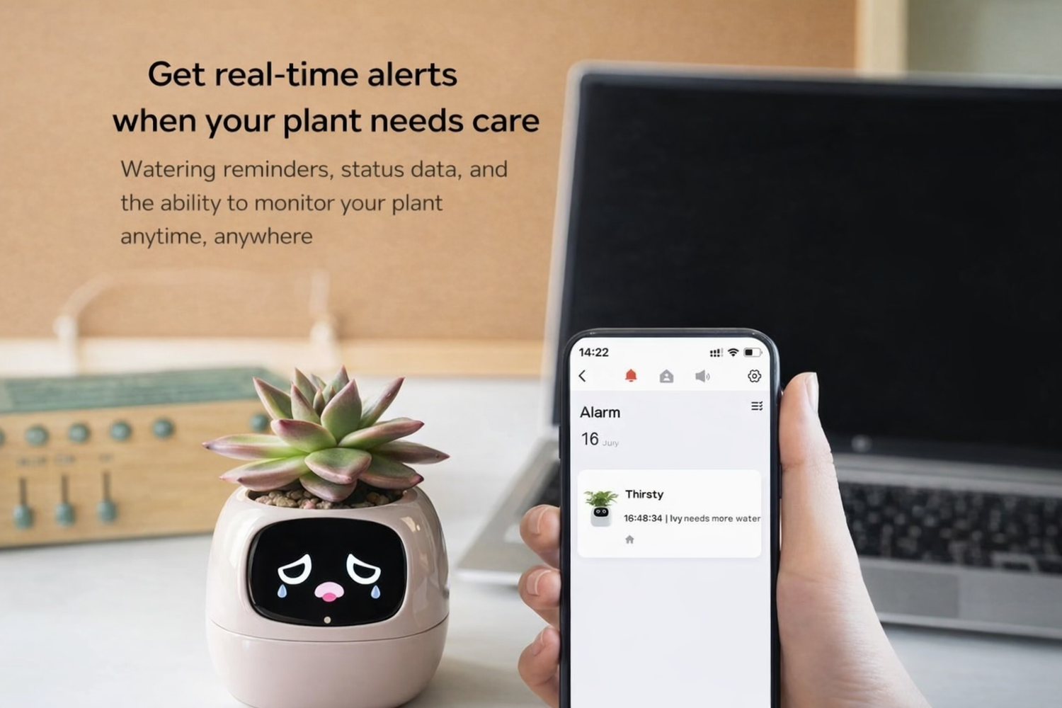 You’ll receive alerts on your phone when your plant needs attention.